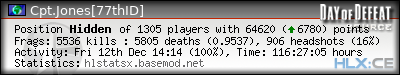 | Rank | Server | Kills | % | Ratio | Deaths | K:D | Headshots | Percentage of Headshots | % | HS:K |