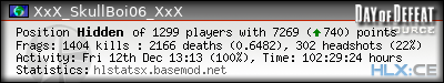 | Rank | Server | Kills | % | Ratio | Deaths | K:D | Headshots | Percentage of Headshots | % | HS:K |