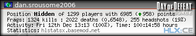 | Rank | Server | Kills | % | Ratio | Deaths | K:D | Headshots | Percentage of Headshots | % | HS:K |