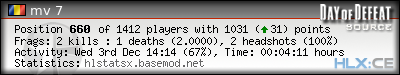| Rank | Map | Kills | % | Ratio | Deaths | % | Ratio | K:D | Headshots | % | Ratio | HS:K |
