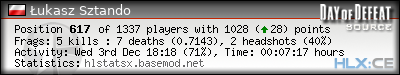 | Rank | Map | Kills | % | Ratio | Deaths | % | Ratio | K:D | Headshots | % | Ratio | HS:K |