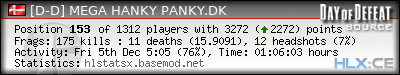 | Rank | Server | Kills | % | Ratio | Deaths | K:D | Headshots | Percentage of Headshots | % | HS:K |