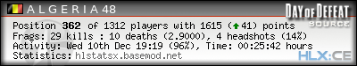 | Rank | Map | Kills | % | Ratio | Deaths | % | Ratio | K:D | Headshots | % | Ratio | HS:K |