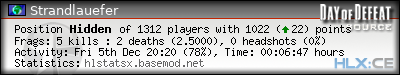 | Rank | Map | Kills | % | Ratio | Deaths | % | Ratio | K:D | Headshots | % | Ratio | HS:K |