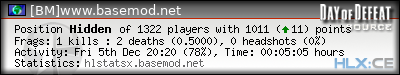 | Rank | Map | Kills | % | Ratio | Deaths | % | Ratio | K:D | Headshots | % | Ratio | HS:K |