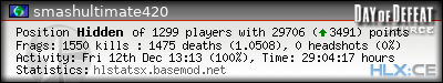 | Rank | Server | Kills | % | Ratio | Deaths | K:D | Headshots | Percentage of Headshots | % | HS:K |
