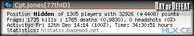 | Rank | Server | Kills | % | Ratio | Deaths | K:D | Headshots | Percentage of Headshots | % | HS:K |