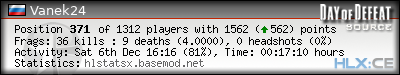 | Rank | Server | Kills | % | Ratio | Deaths | K:D | Headshots | Percentage of Headshots | % | HS:K |