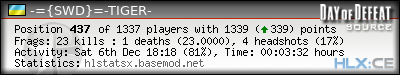 | Rank | Server | Kills | % | Ratio | Deaths | K:D | Headshots | Percentage of Headshots | % | HS:K |