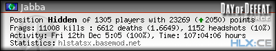 | Rank | Server | Kills | % | Ratio | Deaths | K:D | Headshots | Percentage of Headshots | % | HS:K |