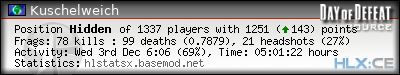 | Rank | Server | Kills | % | Ratio | Deaths | K:D | Headshots | Percentage of Headshots | % | HS:K |