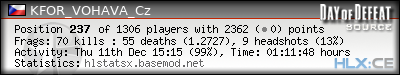 | Rank | Server | Kills | % | Ratio | Deaths | K:D | Headshots | Percentage of Headshots | % | HS:K |