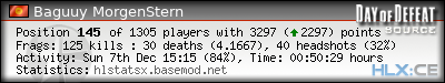 | Rank | Server | Kills | % | Ratio | Deaths | K:D | Headshots | Percentage of Headshots | % | HS:K |
